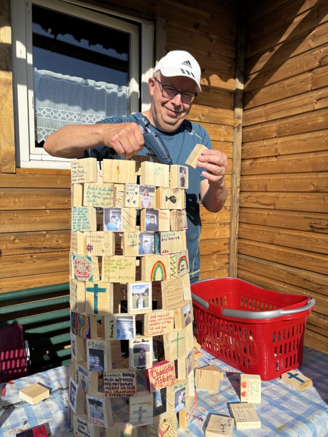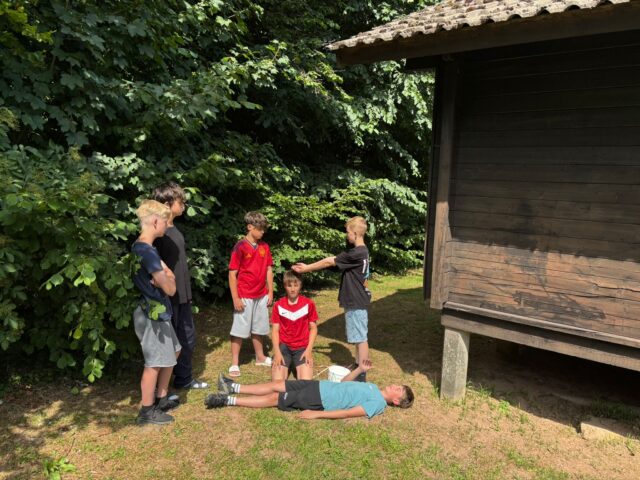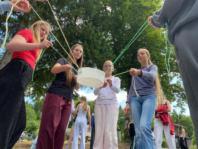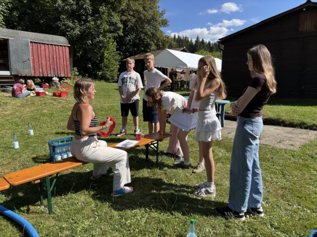 Der erste ganze Tag steht in Wildflecken unter dem Zeichen der Taufe. Die Konfis setzen sich am Vormittag besonders mit dem Wasser auseinander, das bei der Taufe eine zentrale Rolle spielt. Gemeinsam tragen sie das wertvolle Gut von Station zu Station und lernen über die Taufe als Symbol der Christenheit. Morgen werden auf dem Kreuzberg dann drei Konfis getauft.