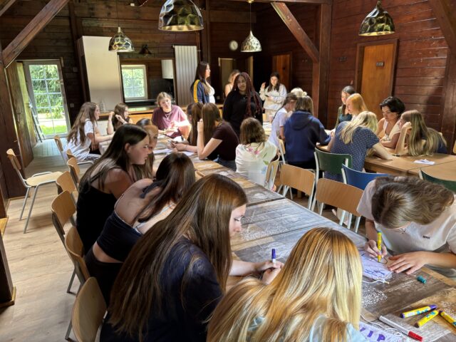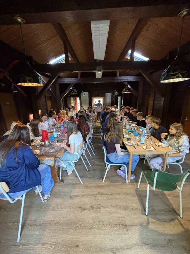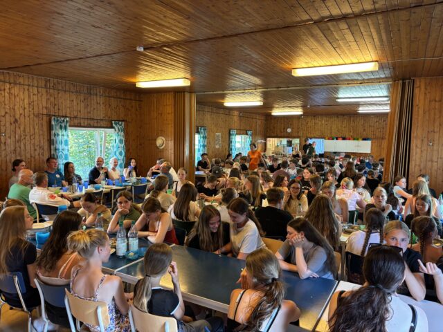 Dieses Jahr sind viele Menschen in Wildflecken! Für das Frühstück und Abendessen weichen die Jugendlichen daher in das Gästehaus aus, wo in den Zimmer die JiC-Mädchen übernachten. Frühstücken in ruhiger Atmosphäre – für Wildflecken-erfahrene Jugendliche eine neue Erfahrung.